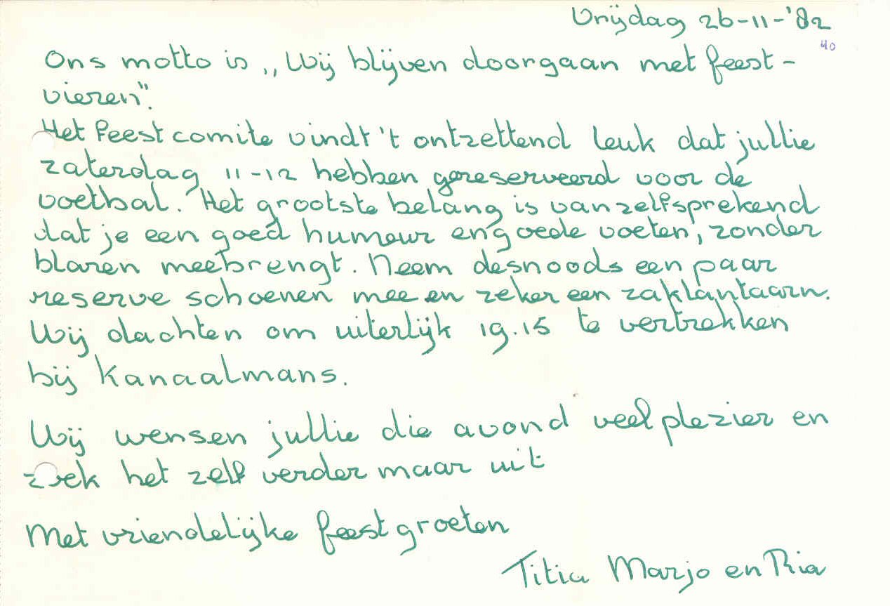 Uitnodiging voor jubileum feestavond op 1982-03-18