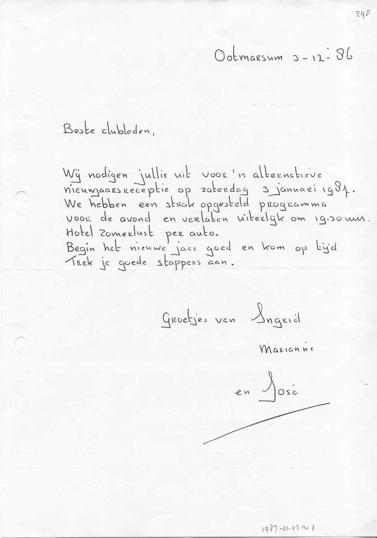 Zaterdag 3 jan 1987.