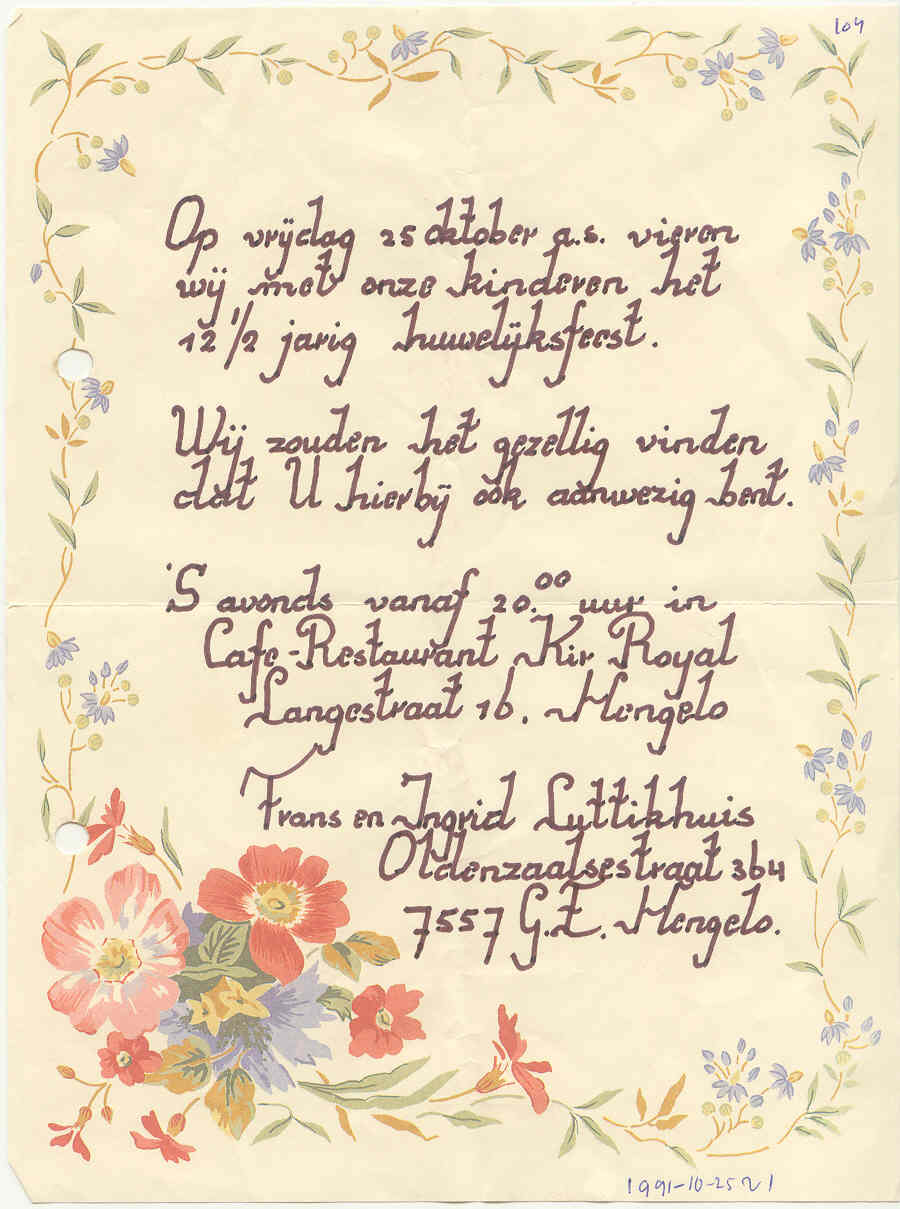 Feest ter gelegenheid van het 12½ jarige huwelijk van Frans en Ingrid Luttikhuis.