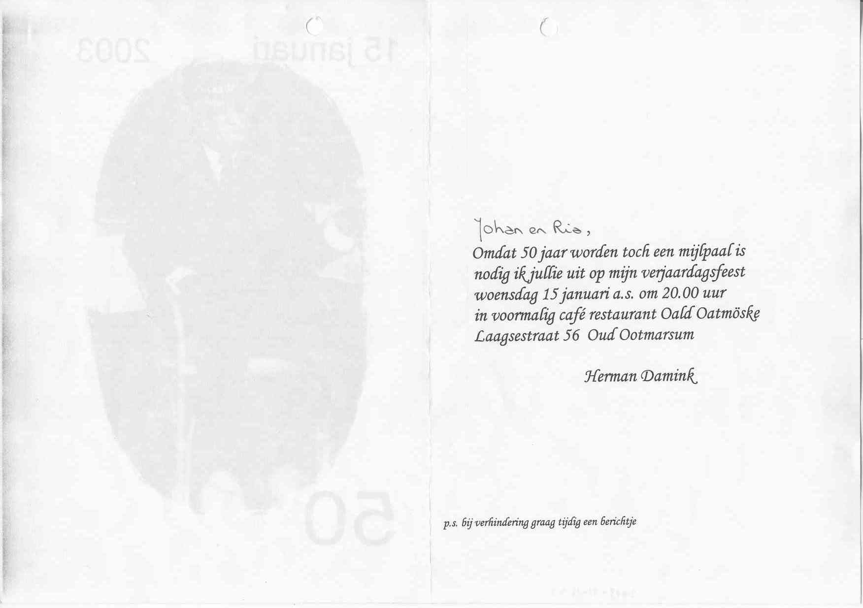 Feest van de 50 jarige Herman Damink bij café-restaurant Oald Oatmöske in oud Ootmarsum.