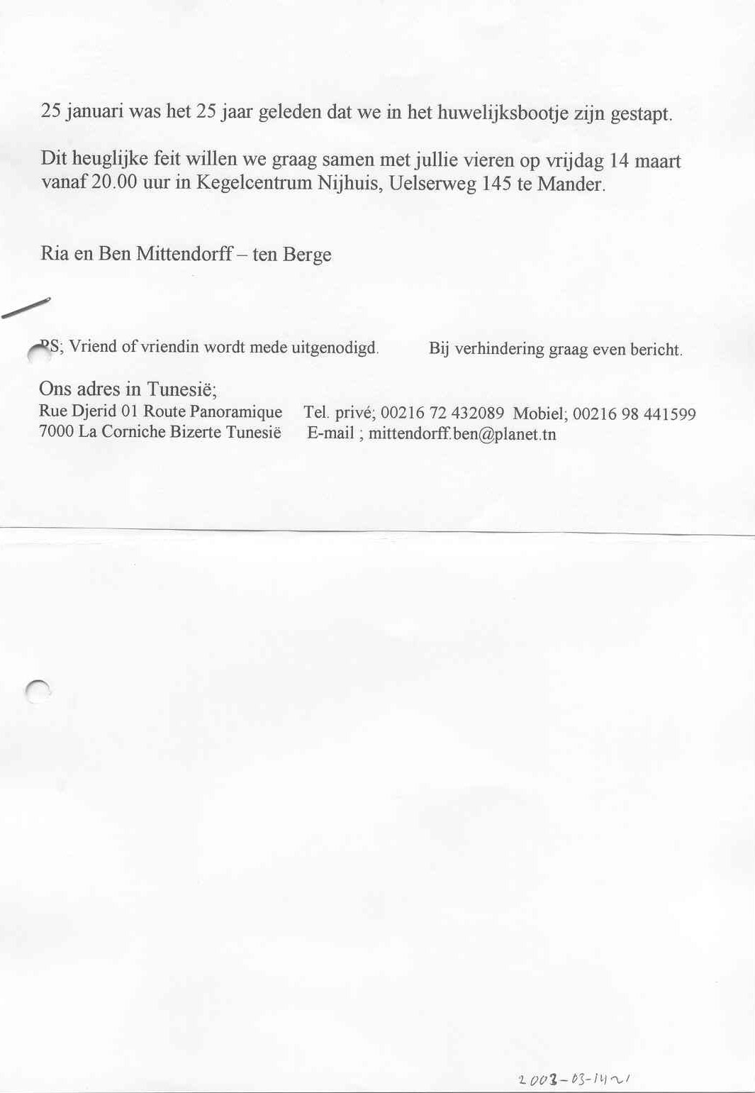 van Ben en Ria Mittendorf. Onze voorzitter die normaal in zijn woning in Tunesië verbleef,