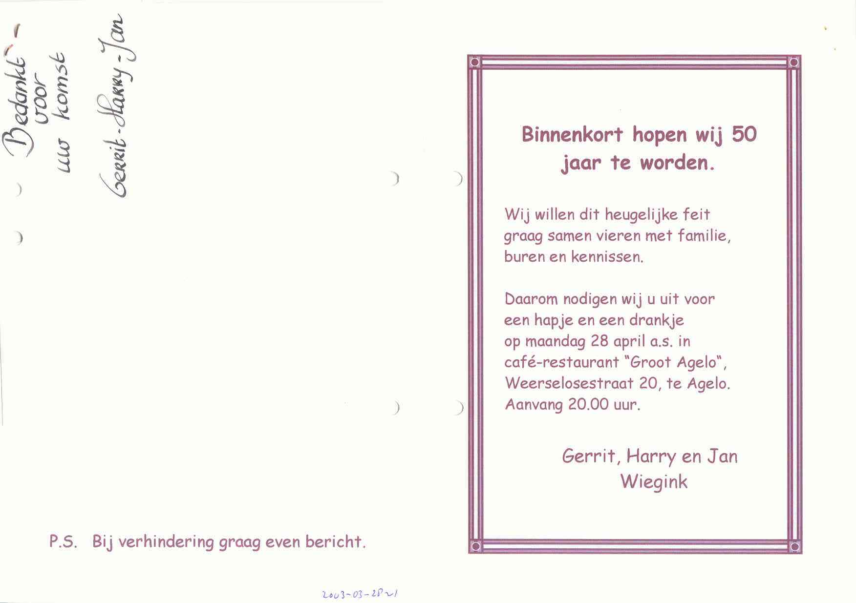 Donderdag 27 mrt 2003.