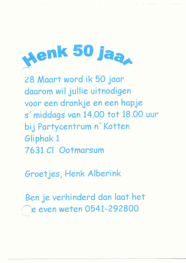 Feestavond op uitnodiging van Johan Burink ter gelegenheid van zijn 50ste verjaardag