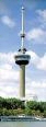Euromast met uitzicht over Rotterdam. Ondanks de lauwe koffie hebben we het