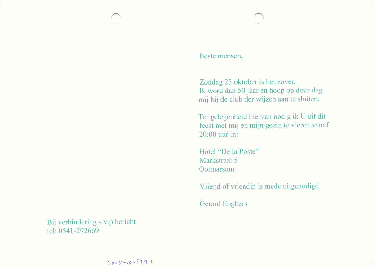 van de anderen geplaatst. Gelukkig kwam Gerard nog naar buiten om het resultaat te