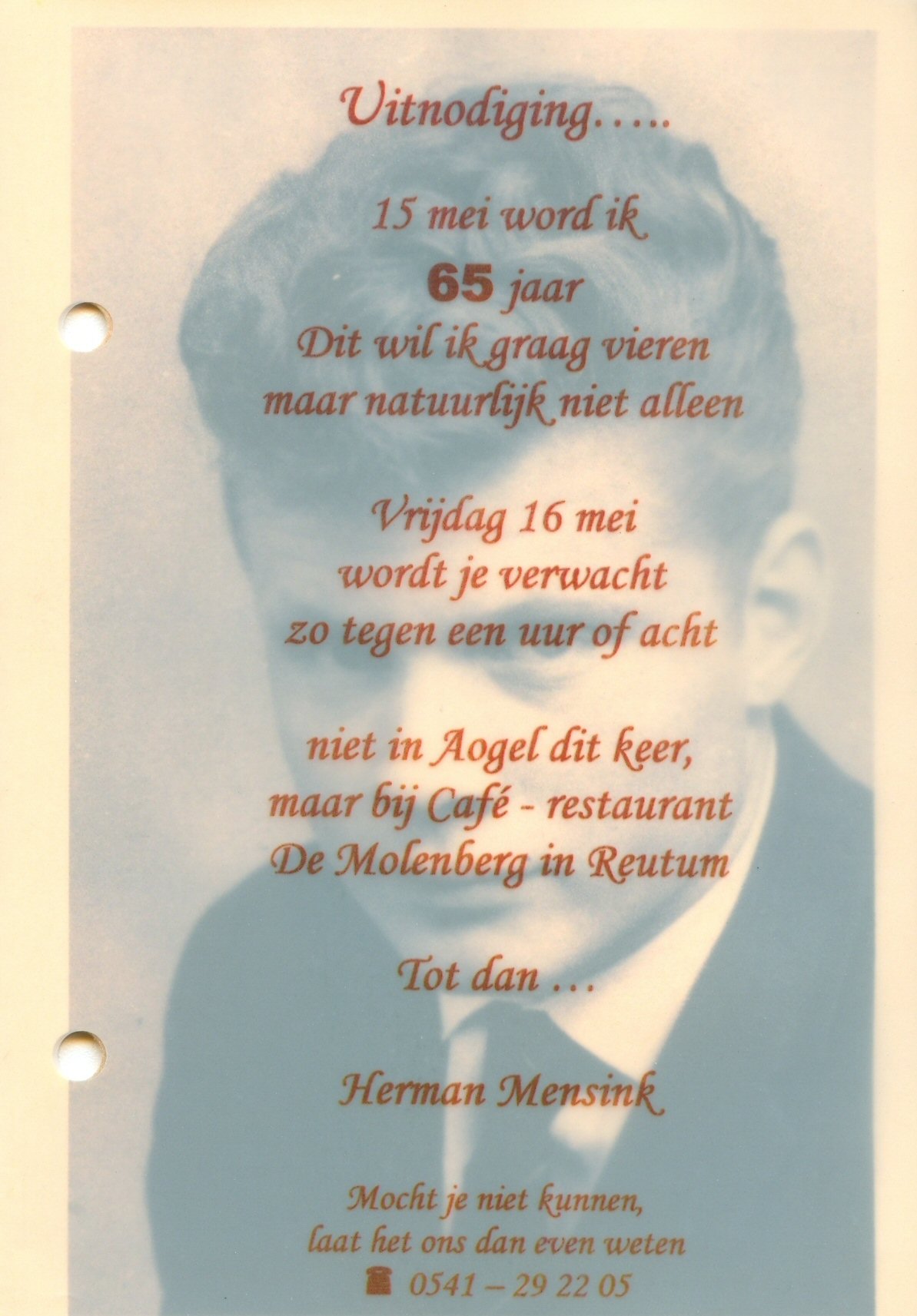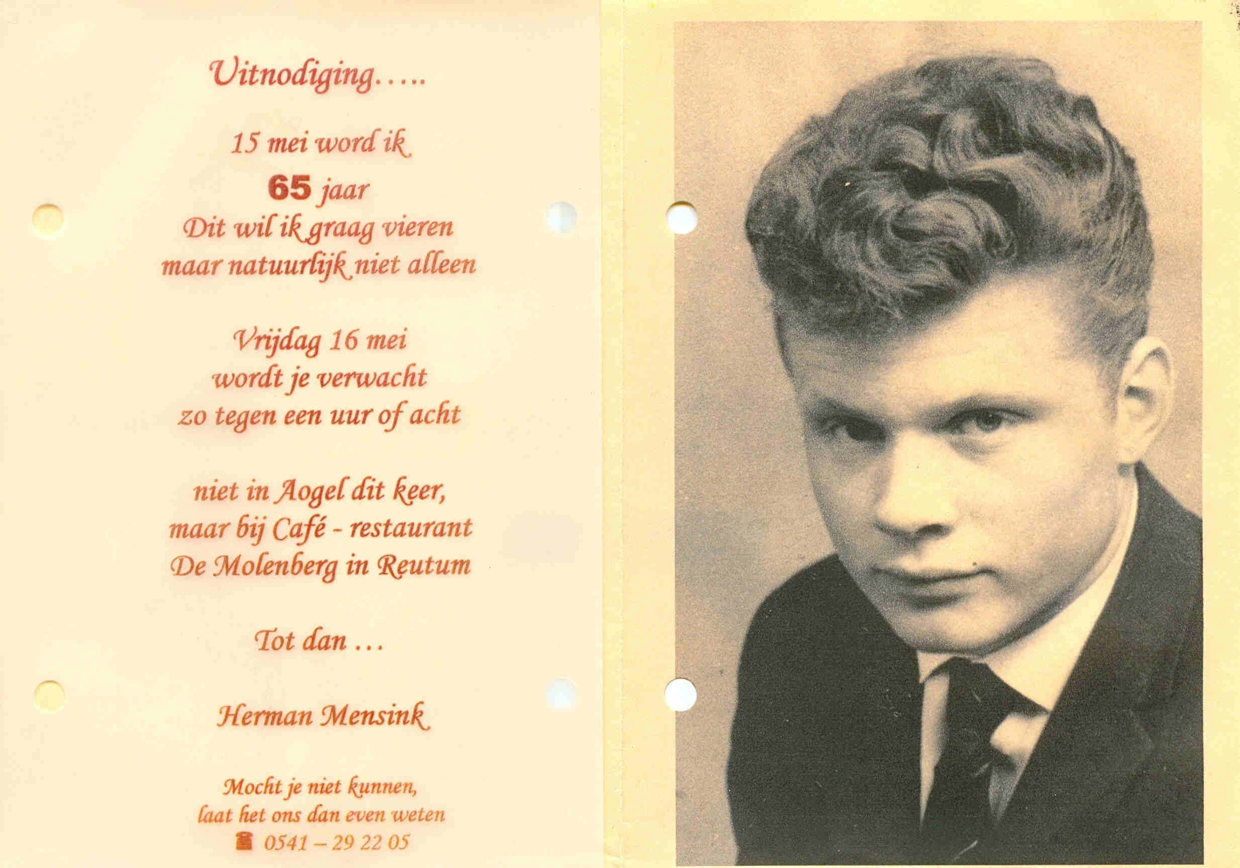 Als eerste van onze leden heeft Herman Mensink de leeftijd van 65 jaar bereikt