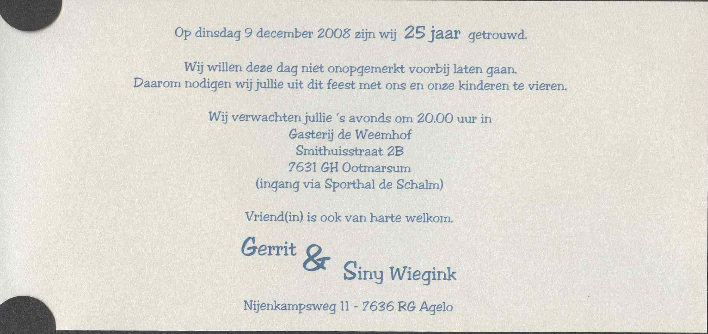 te Ootmarsum ter gelegenheid van het 25-jarig huwelijksjubileum van Gerrit en Siny Wiegink.